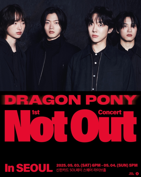 드래곤포니가 오는 5월 3~4일 서울 마포구 신한카드 SOL페이 스퀘어 라이브홀에서 단독 콘서트 '낫 아웃(Not Out)'을 개최하는 가운데, 해당 공연의 티켓은 예매 오픈 2분 만에 모두 판매됐다.