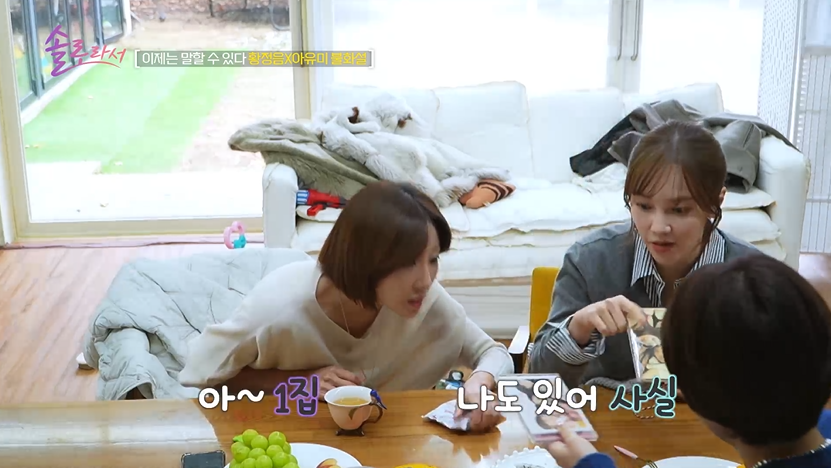이날 황정음은 슈가 멤버 아유미를 집으로 초대했다. 아유미는 "이사 온 집은 처음"이라며 집 구경을 했는데, 황정음의 드레스룸을 보고 놀라서 입을 다물지 못했다.