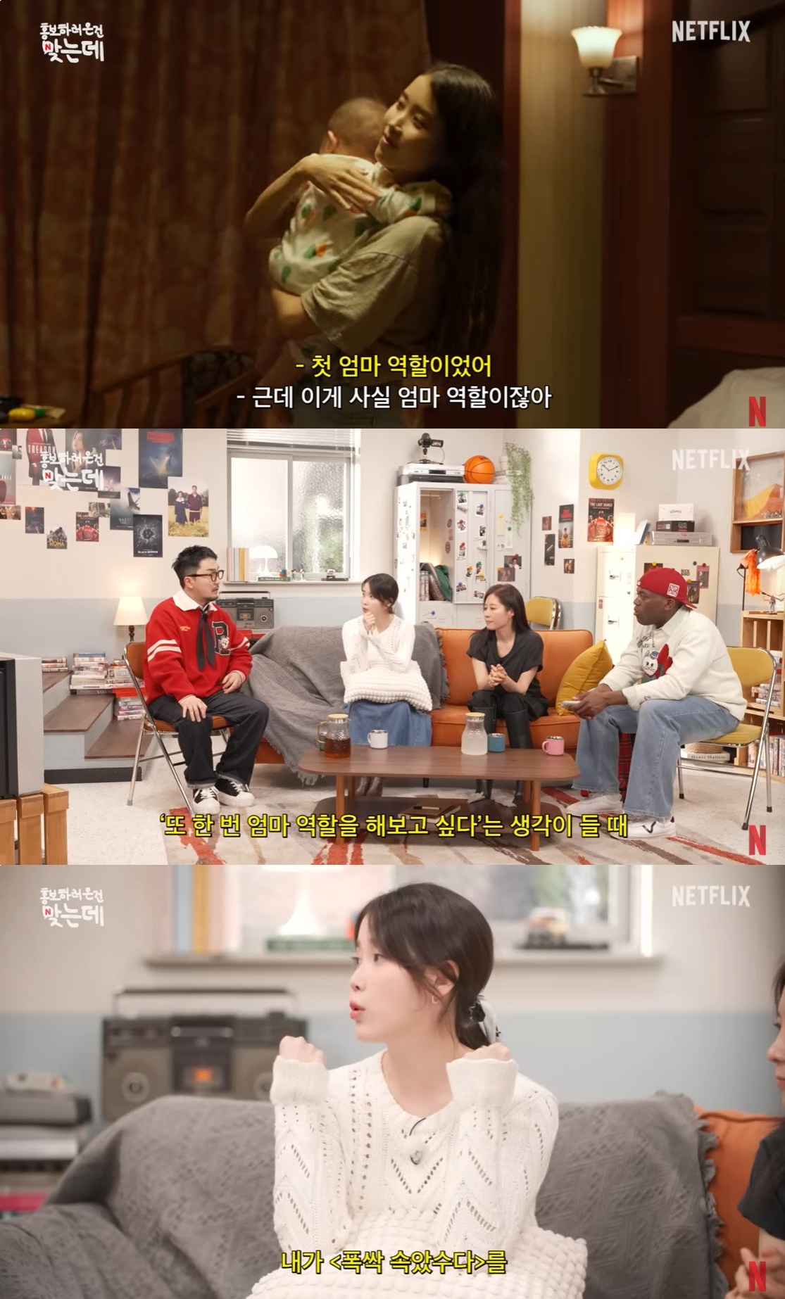 그는 "(감독이) '나의 아저씨'를 작품을 너무 좋게 보셨다고 했다. 첫 엄마 역할이었다. 그래서 '브로커'를 한 다음에 또 한 번 엄마 역할을 해보고 싶다는 생각이 들었을 때 '폭싹 속았수다' 제안을 받게 됐다"며 엄마 연기에 욕심이 생긴 상태였다고 전했다.