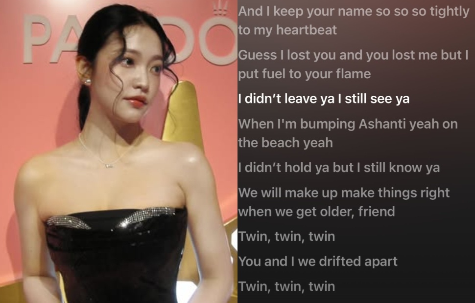12일 故 김새론의 절친 예리는 자신의 계정에 블랙핑크 제니의 'twin'(트윈) 가사를 캡처해 올렸다. 해당 곡은 제니가 멀어진 10년 지기 절친을 위해 쓴 곡으로 알려져 있다.