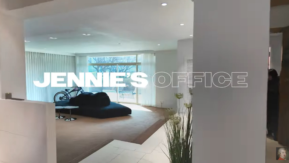 제니 소속사 사무실에는 큰 소파와 TV 그리고 코첼라에서 선물로 준 자전거 등이 놓여 있었다. 제니의 커리어가 담긴 앨범과 트로피 등도 전시됐다. 특히 눈길을 끈 건 넓은 정원. 직원들이 쓸 수 있는 넓은 정원까지 자리해 이목을 집중시켰다.