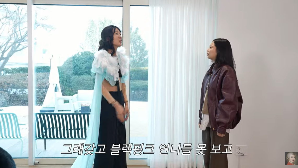 홍진경은 인테리어에 관심을 보이기도 했다. "소파 멋있다"는 홍진경의 말에 제니는 "우리 엄마가 골랐다"며 어머니의 안목임을 짚었다.