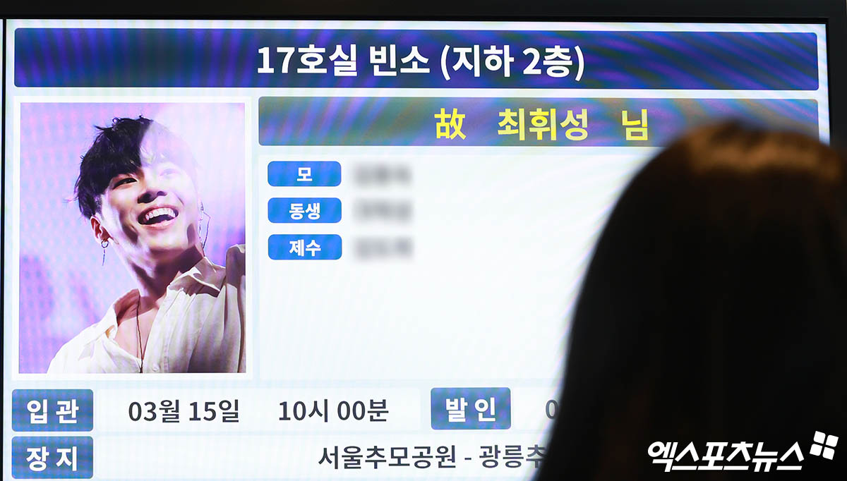 (엑스포츠뉴스 박지영 기자) 갑작스럽게 세상을 떠난 故 휘성의 빈소가 14일 삼성서울병원 장례식장에 마련됐다.
