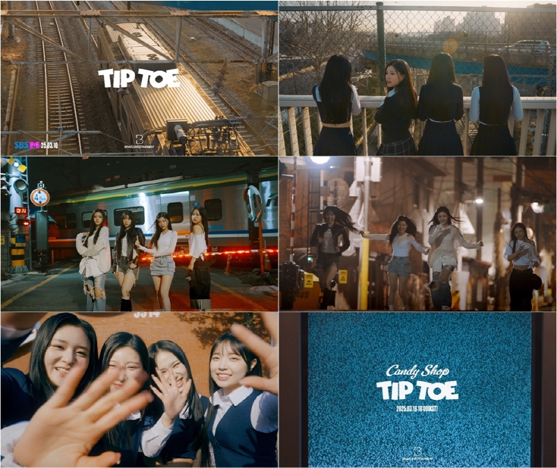 브레이브엔터테인먼트 소속 걸그룹 캔디샵(소람, 수이, 사랑, 줄리아)은 14일 공식 SNS 및 공식 유튜브 채널을 통해 첫 번째 디지털 싱글 'TIP TOE' 뮤직비디오 티저 영상을 공개했다.
