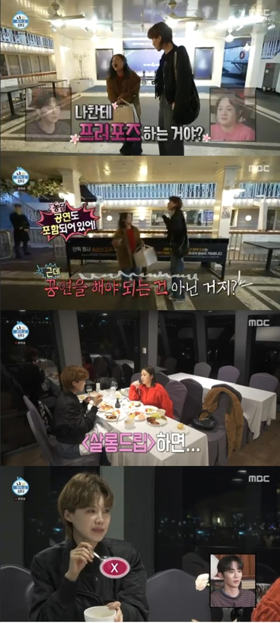 박나래는 장도연을 데리고 유람선 안으로 들어갔다. 장도연은 놀란 얼굴로 "나한테 프러포즈 하는 거야?"라고 물었다.