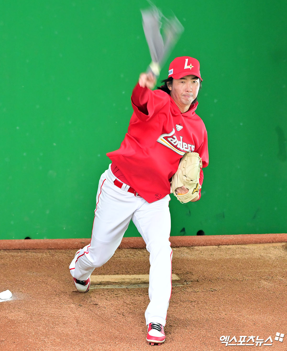 (엑스포츠뉴스 인천, 김한준 기자) 15일 오후 인천SSG랜더스필드에서 열리는 '2025 신한 SOL Bank KBO리그' LG 트윈스와 SSG 랜더스의 시범경기, SSG 문승원이 섀도우 피칭을 하고 있다.