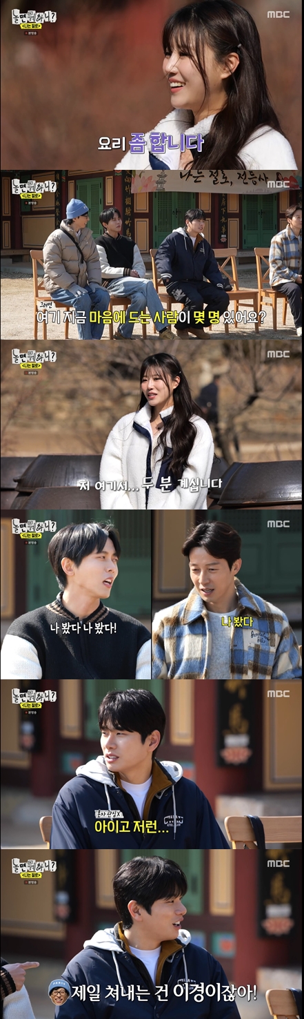 또 "한식 위주로 요리를 좀 한다. 김치찌개, 된장찌개 다 한다"고 어필했다. 이이경이 "여기서 마음에 드는 사람이 몇 명 정도 있냐"고 묻자, 이미주는 "두 분 정도 계신다"고 답했다.