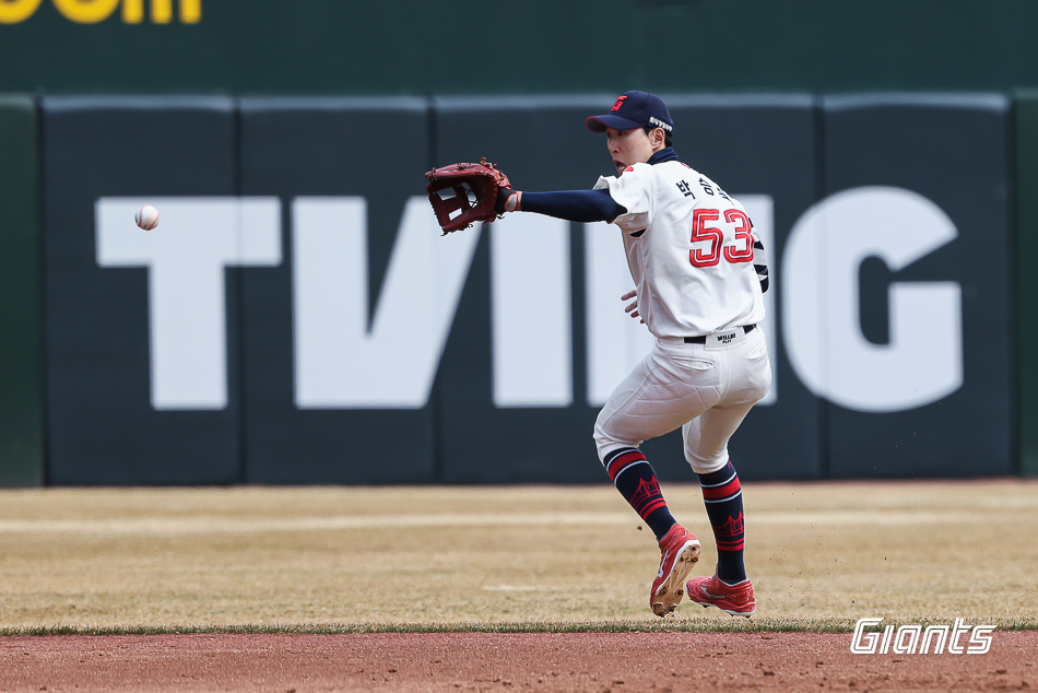 김태형 감독은 지난 8일 시범경기 개막 당시 '주전 유격수 경쟁이 치열할 것 같다'는 취재진의 질문을 받은 뒤 "그렇게 말하면 박승욱이 기분 나쁘지 않겠느냐"라며 박승욱에게 힘을 실어줬다.
