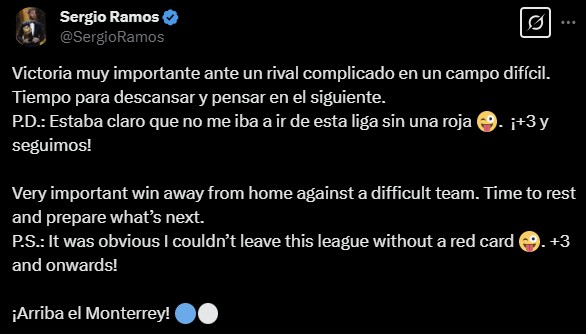 라모스는 이후 더 이해하기 어려운 행동을 보였다. 경기 후 자신의 사회관계망서비스(SNS)를 통해 "어려운 경기였다. 우리는 매우 중요한 승리를 거뒀다. 휴식 후 다음 경기를 준비할 것이다"라며 "레드카드 없이 맥시코 리그를 떠날 순 없겠지"라는 문구와 한쪽 눈을 감고 메롱 하는 이모지도 덧붙였다.