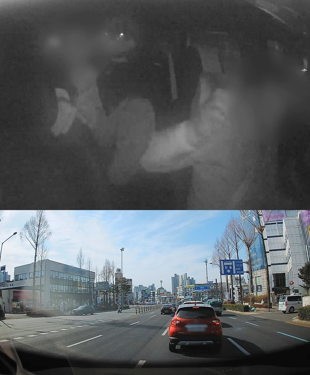 공개된 블랙박스 영상에서는 취객이 늦은 밤 주행 중인 택시 뒷자석에서 난데없이 기사에게 발길질하는 경악스러운 장면이 담겨있다.