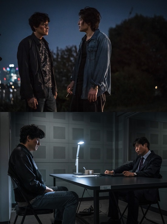 마지막 스틸은 스탠드 불빛이 비치는 조사실에 마주 앉은 구관희와 오상재의 모습을 담았다.