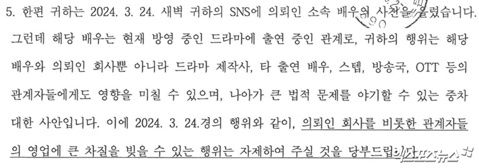 이들은 "당사는 김새론 씨에게 그 어디에도 작품('눈물의 여왕')에 끼치는 손해에 배상하라는 요구를 하지 않았다"며 내용증명 전문을 게재했다.