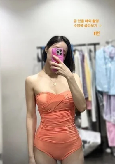 또 다른 사진에서는 한그루가 코랄색 수영복을 입고 화사한 느낌을 더했다. 그는 "곧 있을 해외 촬영. 수영복 골라보기"라는 글을 덧붙이며 촬영을 앞둔 기대감을 전했다.