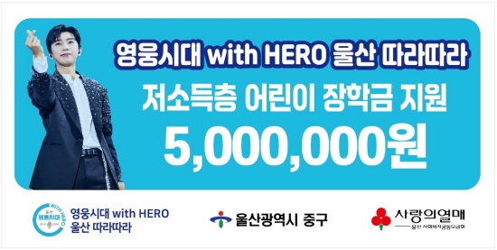 임영웅 팬클럽 '영웅시대 With Hero 울산 따라따라'는 지난 14일 가수의 '미스터트롯' 진(眞) 5주년을 기념해 울산 중구청을 통해 장학금으로 500만 원을 기부했다고 밝혔다.