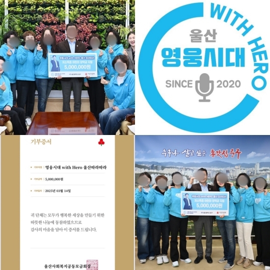 한편, 임영웅 팬클럽 '영웅시대 With Hero 울산 따라따라'는 2021년 8월부터 가수 임영웅의 데뷔일, 생일 등 의미 있는 기념일에 맞춰 기부를 실천했다. 울산 중구를 통해 전달한 기부금은 총 4,244만 원이다.