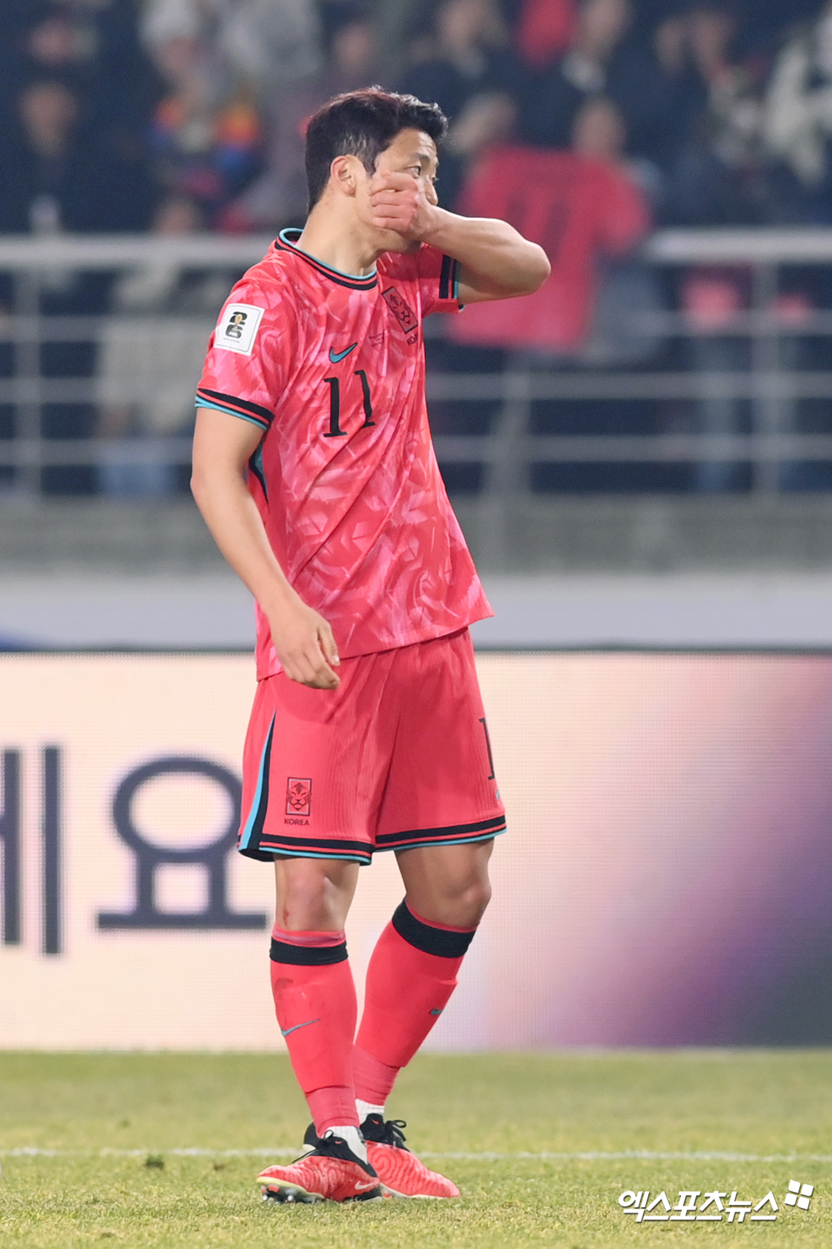 (엑스포츠뉴스 고양, 고아라 기자) 20일 오후 경기도 고양종합운동장에서 열린 '2026 FIFA 북중미 월드컵 아시아지역 3차 예선 대한민국과 오만의 경기, 대한민국 황희찬이 전반 선취 득점한 뒤 세리머니를 하고 있다.