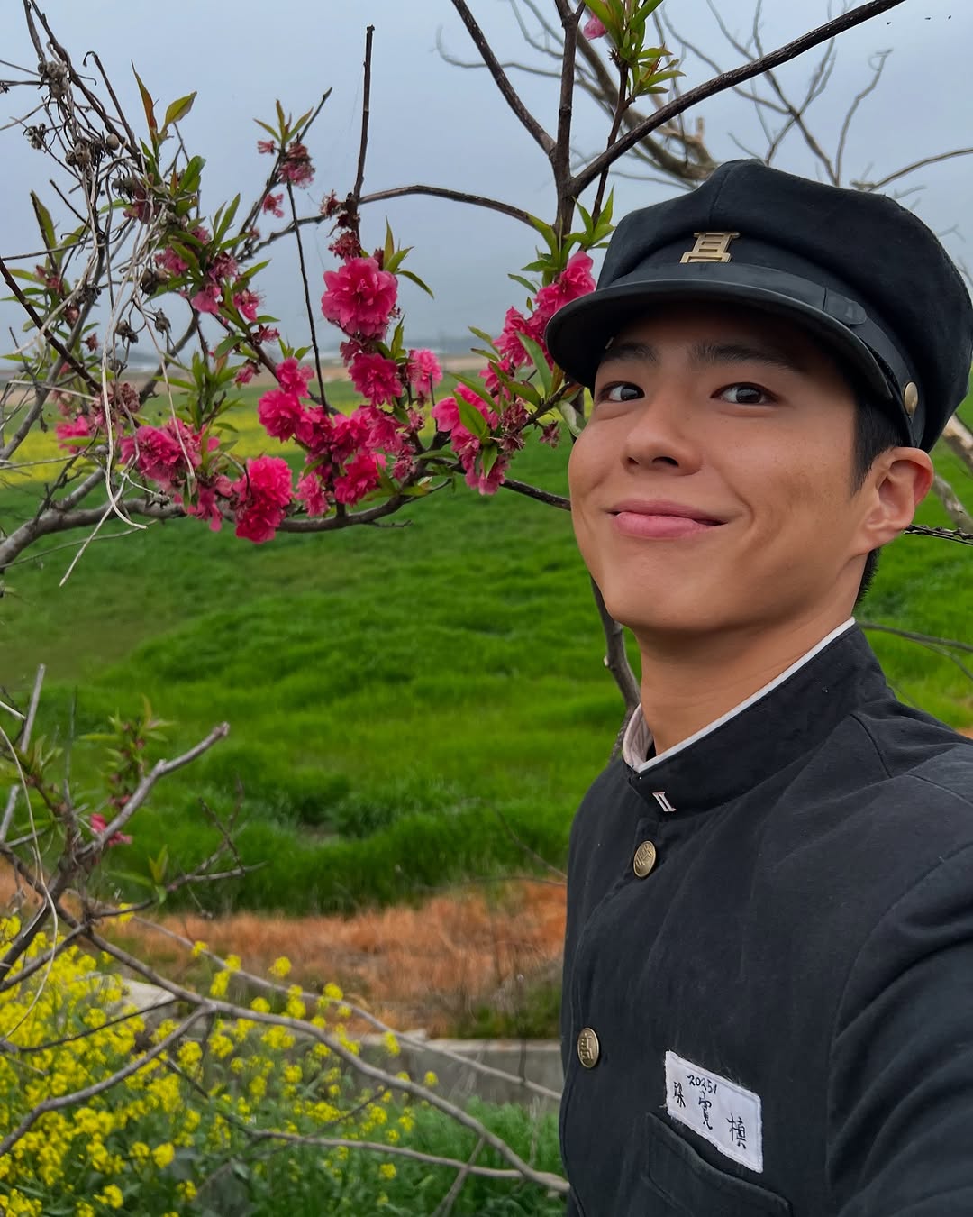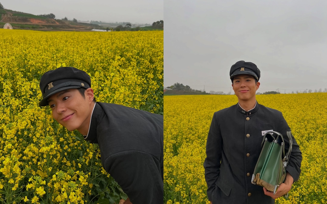 공개된 사진 속 박보검은 극 중 아내인 아이유와 결혼식, 교복을 입고 자전거를 타는 모습, 유채꽃밭에서 미소 짓는 모습 등을 공유했다.