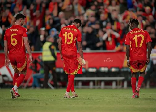 야말은 24일(한국시간) 스페인 발렌시아에 위치한 에스타디오 데 메스타야에서 열린 유럽축구연맹(UEFA) 네이션스리그 8강 2차전서 1, 2차전 합산 스코어 4-4로 팽팽하던 연장 전반 13분 환상적인 득점을 터뜨렸다.
