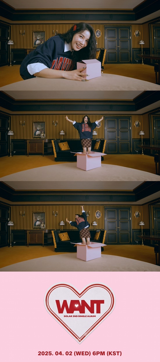한편, 솔라의 두 번째 싱글 'WANT'는 오는 4월 2일 오후 6시 각종 음원 사이트를 통해 발매된다.