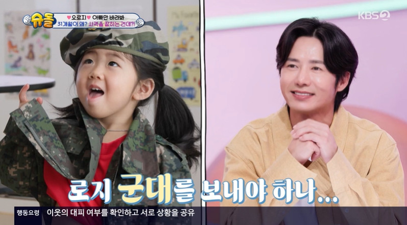 평소 자신을 '로지 공주'라며 공주 놀이에 흠뻑 빠진 로지는 오종혁이 해병대 옷을 입은 모습에 흥미를 보였고, 곧이어 빨간색 티셔츠와 밀리터리 바지를 입어 꼬마 해병대로 변신해 등장했다.