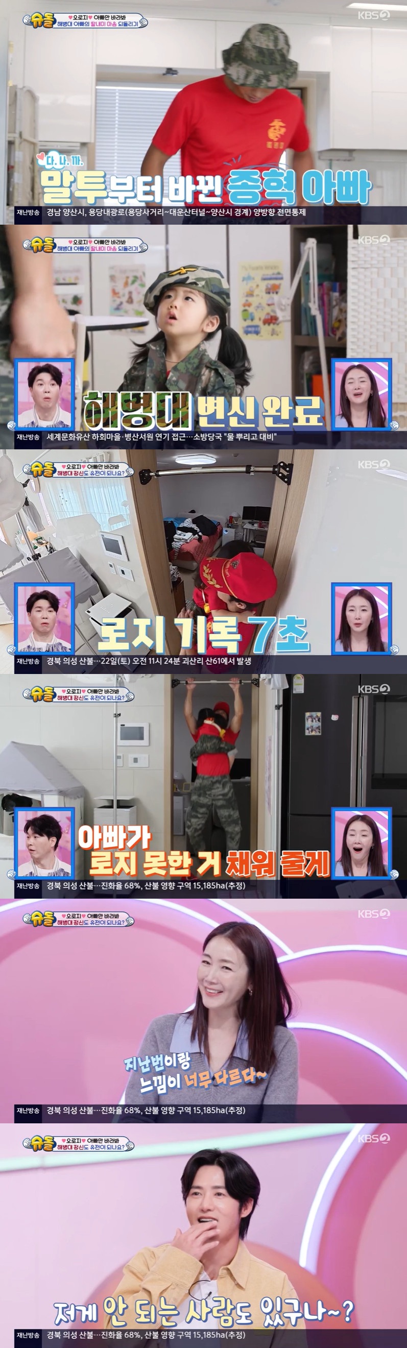 (엑스포츠뉴스 김보민 기자) 해병대 출신 오종혁의 딸 로지가 남다른 체력을 뽐냈다.