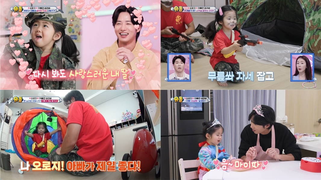 로지는 초밥을 한입 먹더니 “맛있다! 아빠도 먹어봐”라며 칭찬했고, “아빠가 제일 좋아”라며 애정을 폭발시켰다. 오종혁은 “태어나서 그 어떤 순간보다 행복하다”라며 숨길 수 없는 미소를 지었다. 이처럼 더욱 가까워진 껌딱지 부녀 사이가 훈훈함을 안겼다.