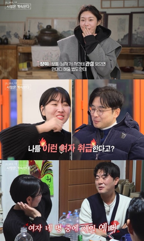 또한, 10기 영식은 “그대여, 영식이 선택했으면 최고 우량주 택한 거야”라고 자화자찬 하더니 “어이구, 애기야! 누나로 불리고 싶어? 나는 그대가 애기 같이 귀여워 보여”라며 자신의 유행어를 소환해 분위기를 띄웠다.