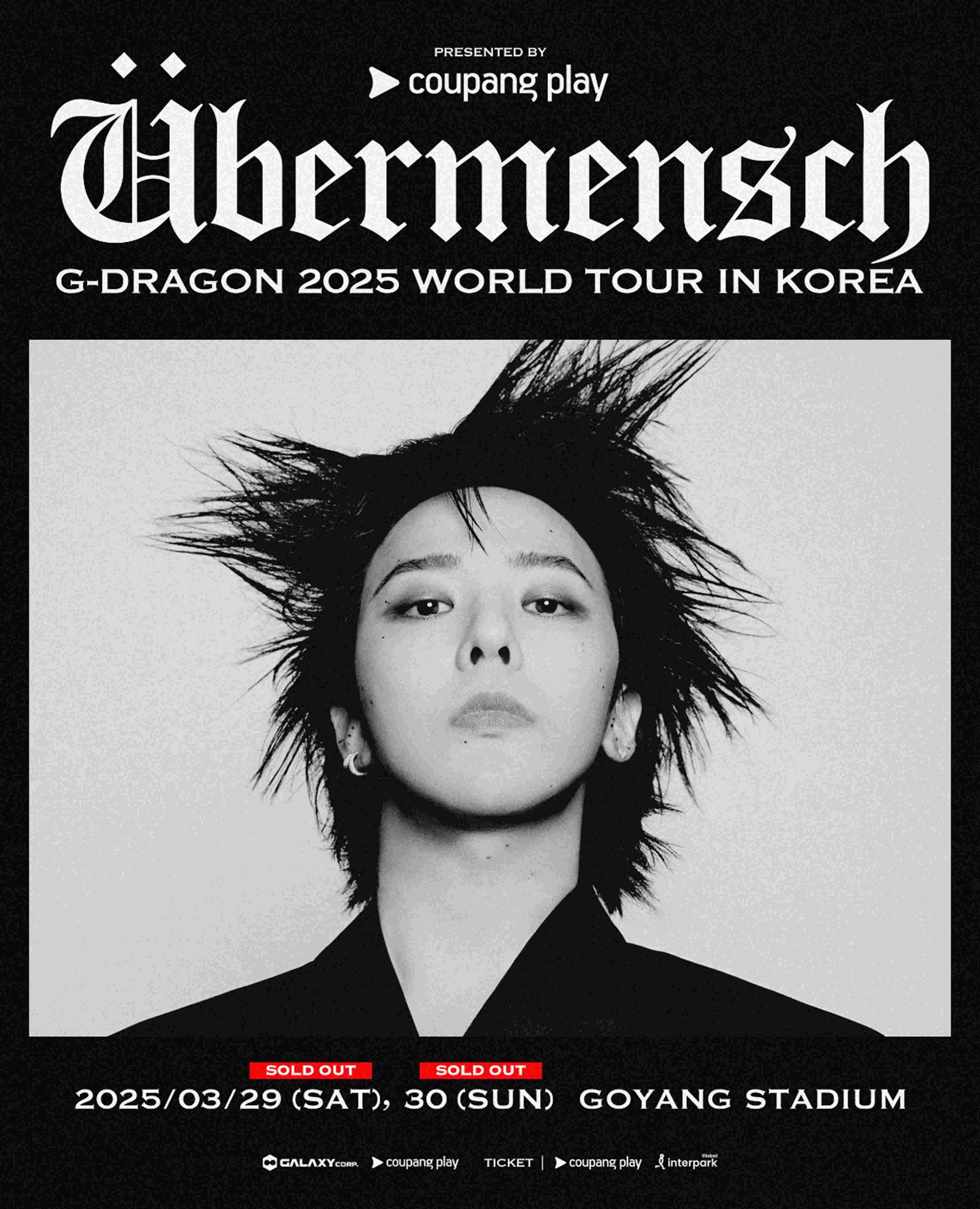 한편, 지드래곤의 세 번째 월드투어 '위버맨쉬'는 5월 10~11일 일본 도쿄를 시작으로 필리핀 불라칸, 일본 오사카, 중국 마카오, 대만, 말레이시아, 쿠알라룸푸르, 인도네시아 자카르타, 홍콩 등 아시아 7개국 8개 도시를 찾는다. 추가 투어 날짜와 장소는 추후 공개될 예정이다.