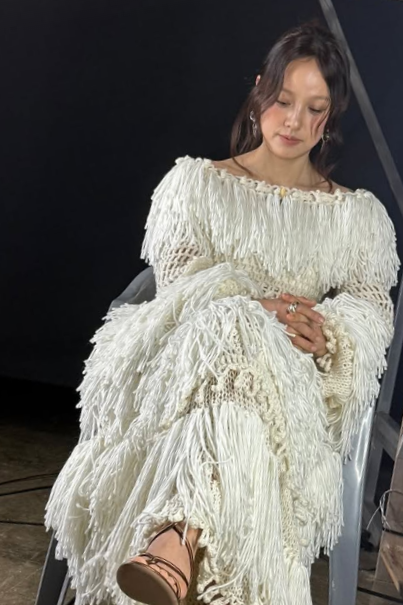 공개된 사진 속 이효리는 흰 원피스를 입은 채 깔끔하게 올려 묶은 헤어스타일과 러블리한 메이크업으로 평소 볼 수 있었던 '센 언니'같은 이미지가 아닌 청순한 매력을 자랑했다. 특히 이효리가 입고 있는 원피스는 수많은 수술과 구멍으로 이루어져 있는 난해한 디자인이지만 완벽하게 소화해 눈길을 끈다.