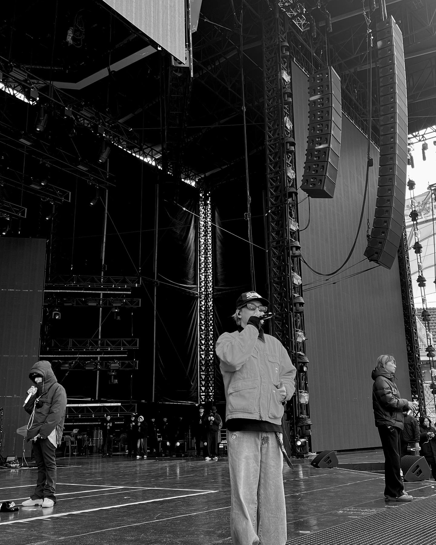 공개된 사진 속 태양은 지드래곤의 세 번째 월드투어 'G-DRAGON 2025 [Übermensch] IN KOREA'의 대형 포스터 앞에서 포즈를 취한 모습이다.