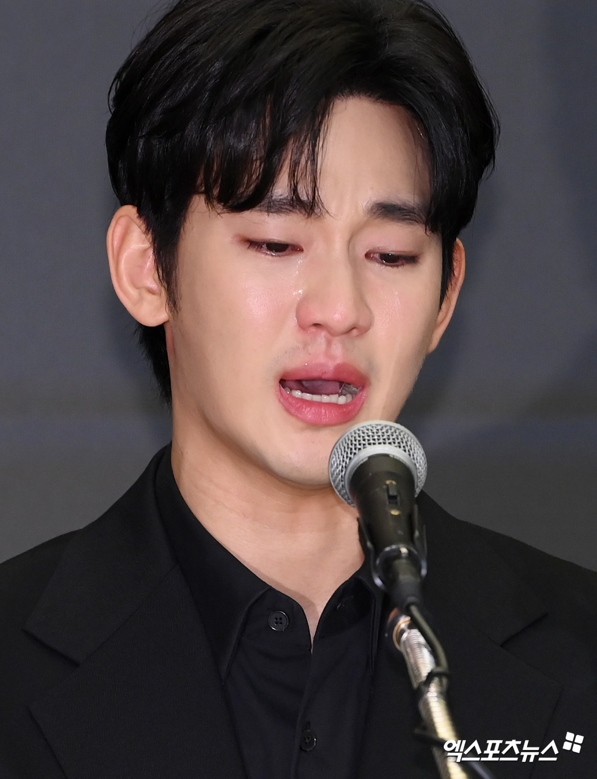 이날 김수현은 깔끔한 정장 차림으로 등장, 입장을 밝히며 카메라 앞에서 눈물을 쏟았다. "저에게 소아성애자, 미성년자 그루밍, 이 같은 프레임을 씌우고 있습니다"라고 호소한 김수현은 '스타'로서 거짓말을 할 수 밖에 없었다고 고백하면서도 미성년자 교제에 대해서 전면 부인했다.
