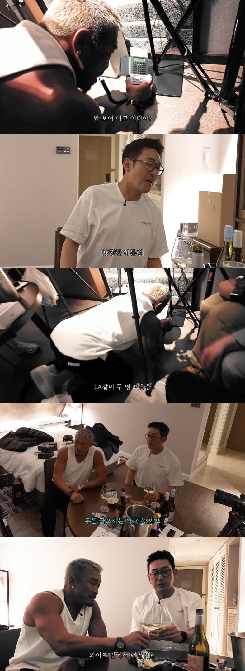 추성훈은 자신의 방에서 하정우와 술자리를 가지다가 "여기 LA갈비 맛있다"라고 말했다.
