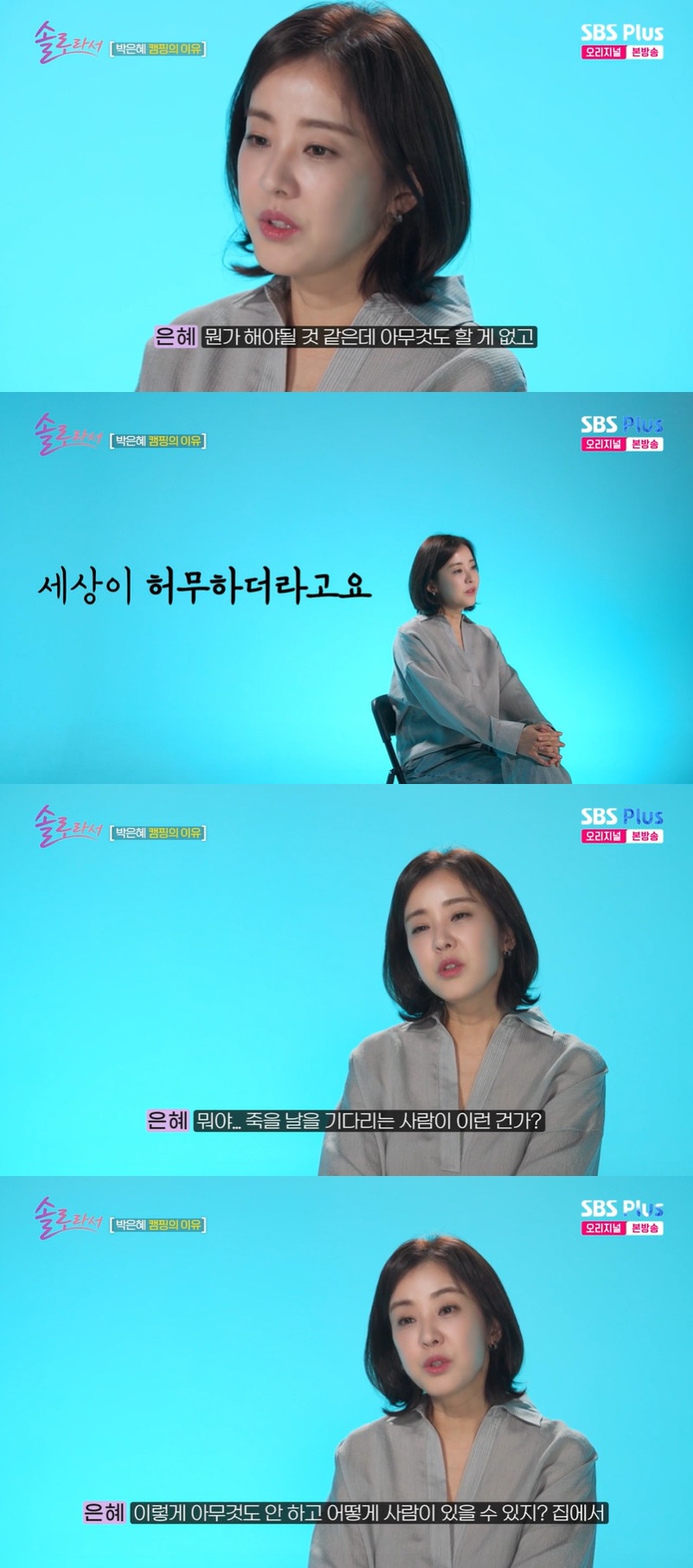 1일 방송된 SBS Plus·E채널 예능 '솔로라서' 13회에서는 배우 박은혜가 출연해 리얼 일상을 선보였다.