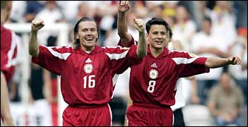 경기 종료 후 무승부를 기뻐하는 라트비아 선수들