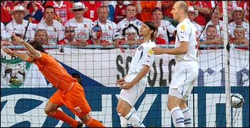'신라이벌' 네덜라드-체코 경기는 시종일관 손에 땀을 쥐게하는 명승부였으며 '공격이 최선의 수비'라는 진리는 다시 한번 가르쳐 준 경기였습니다. 어제 이탈리아-스웨덴 경기 때도 트라파토니 이탈리아 감독의 잠그기 위한 선수교체가 스웨덴으로 하여금 역전의 빌미를 주었다 했었는데, 오늘 경기 역시 네덜란드의 아드보카트 감독의 선수교체가 체코에게 흐름을 내주고 결국 가장 재미있다는 '펠레 스코어'의 역전패를 당하는 결정적인 역할을 하고 말았습니다.