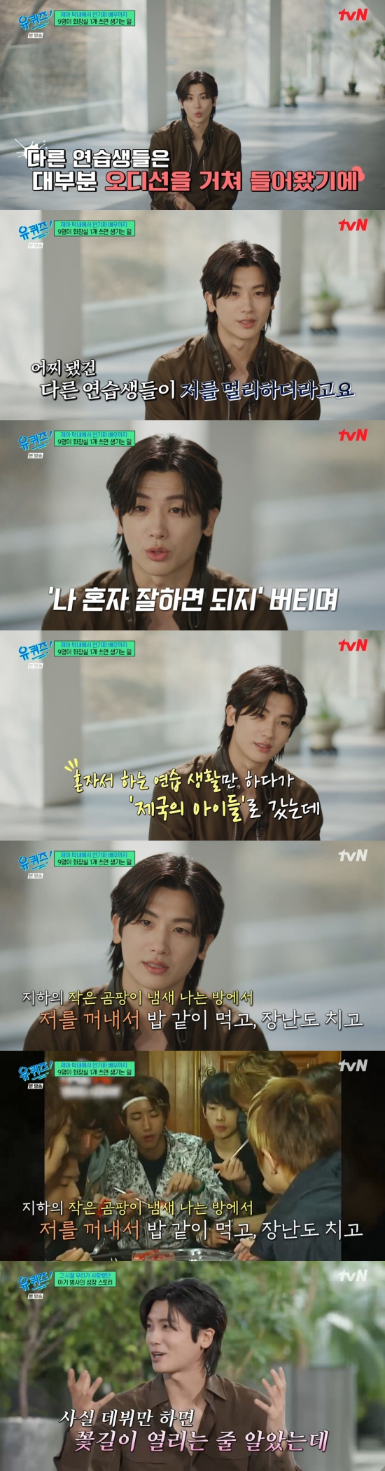 박형식은 "그러다 보니까 저는 잘 모르겠지만 어찌 됐건 저를 좀 멀리하더라. 저는 연습생 생활도 다 그런 건 줄 알았다. 다 경쟁하고 편 가르기 하고 누군가를 왕따를 시키고. '나 혼자만 잘하면 되지' 했다. 결국 실력으로 승부를 봐야 되고. 혼자서 연습하고 혼자서 막 그게 익숙해졌다"라며 회상했다.