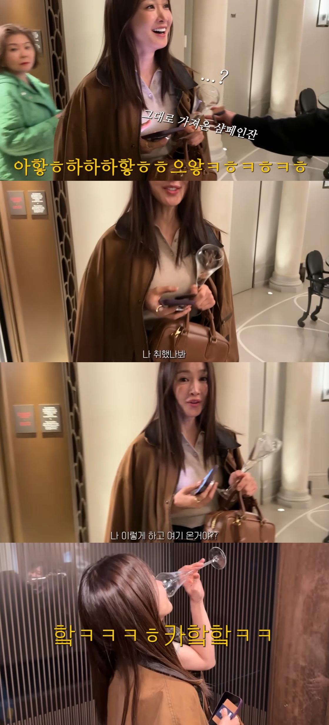 식사 후 호텔에 들어온 이시영은 샴페인 잔을 그대로 들고 와 충격을 받은 표정을 지었다.