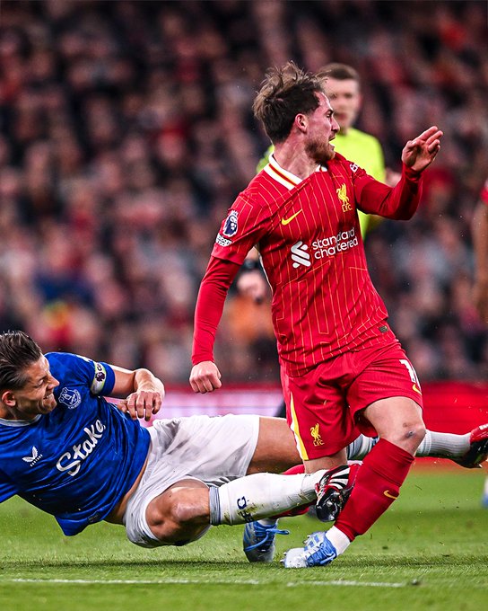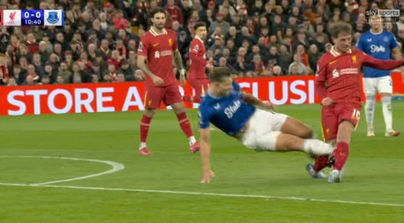 에버턴 주장 타코우스키가 리버풀 미드필더 맥알리스터를 향해 뒤늦게 높은 태클을 가했다. 공을 먼저 건드리긴 했지만 곧바로 강하게 태클이 들어갔다. 발바닥으로 정강이 부분을 정확하게 가격했고, 맥알리스터의 다리는 크게 꺾였다.
