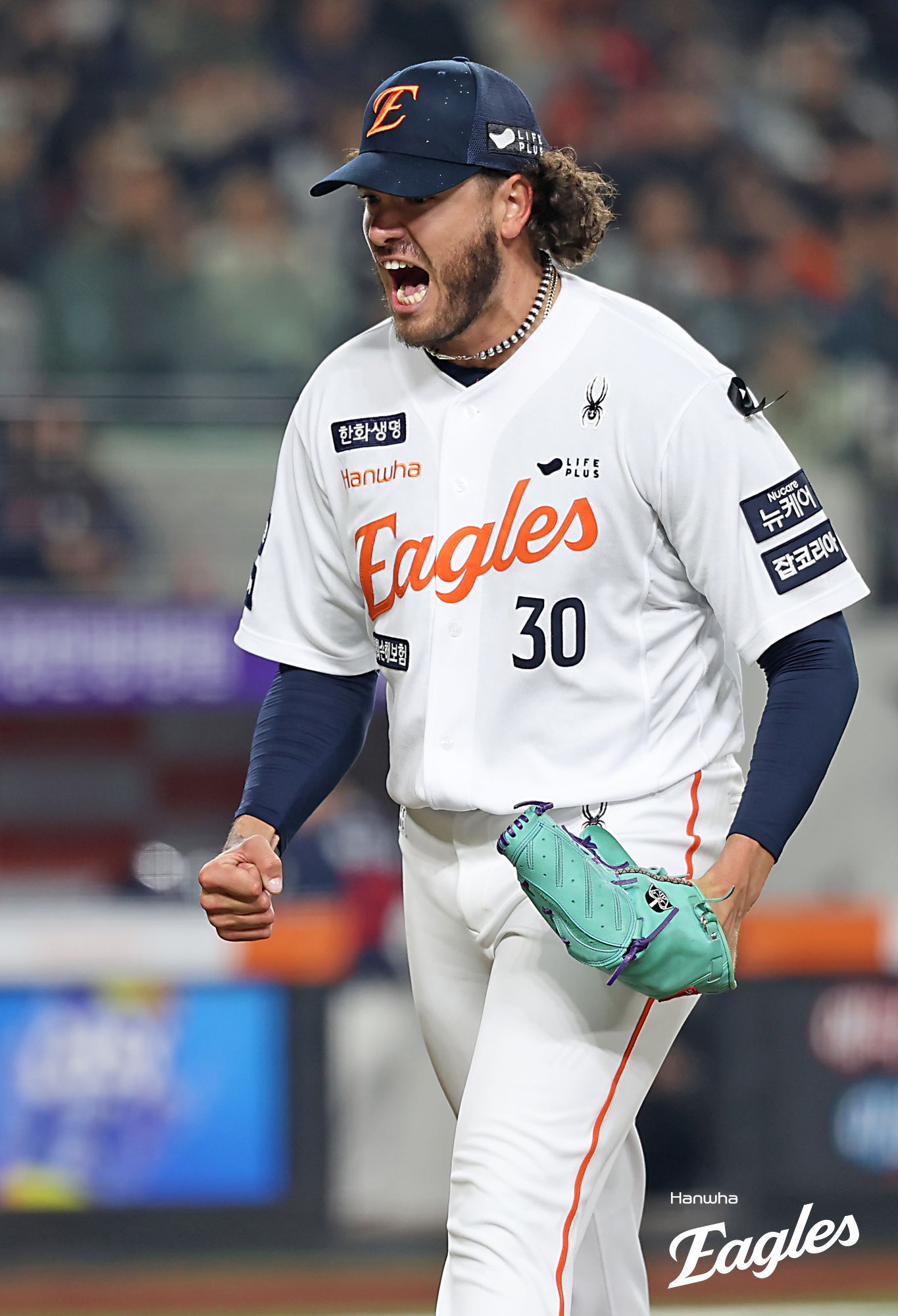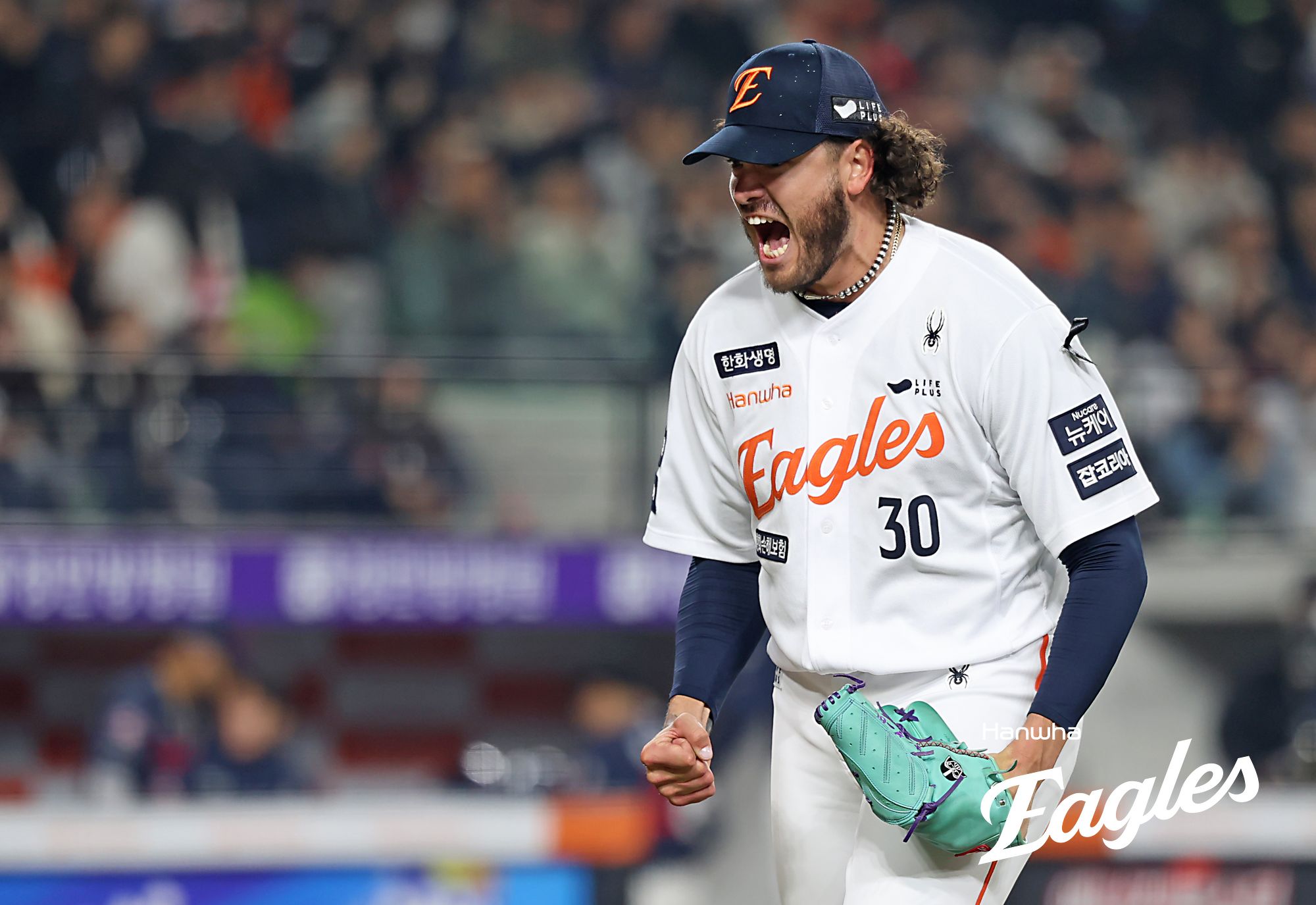 폰세는 2회초 선두타자 빅터 레이예스를 중전 안타로 1루에 내보냈지만 흔들리지 않았다. 김민성을 3루 땅볼, 윤동희를 삼진, 이호준을 1루 땅볼로 잡아내고 첫 고비를 넘겼다.