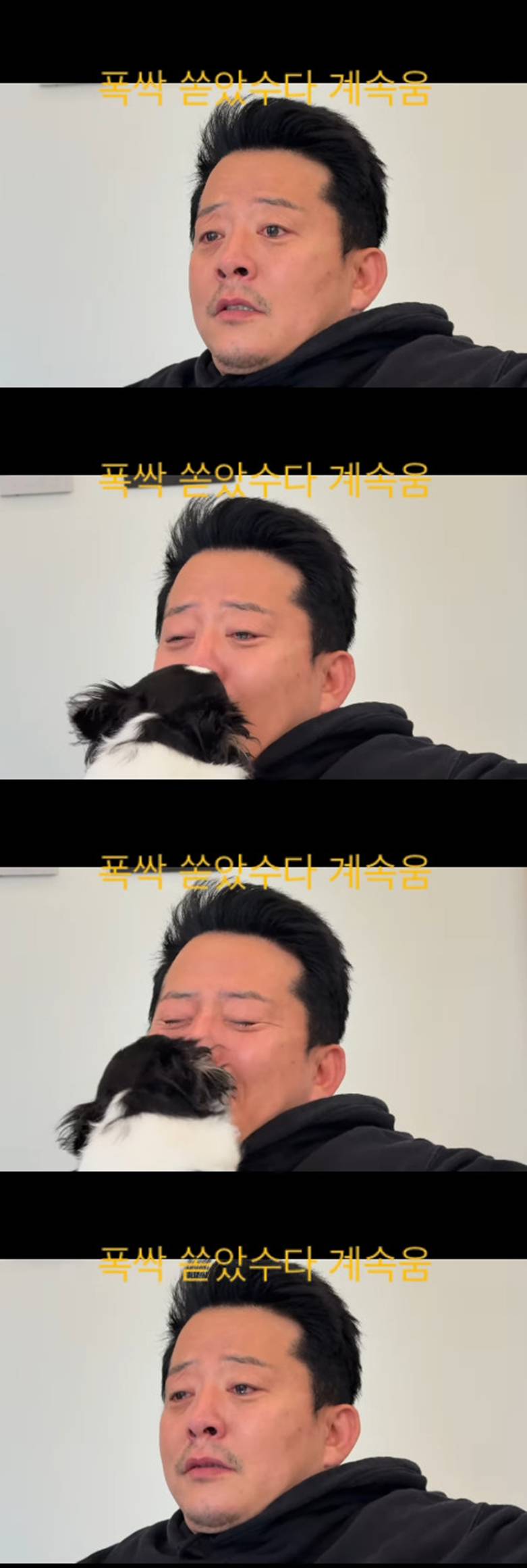 공개된 영상 속 김준호는 집에서 넷플릭스 '폭싹 속았수다'를 보고 있는 모습. 눈물을 흘린 김준호에 김지민은 빵 터진 모습을 보였다. 반려견이 김준호에게 다가가자 "야 아빠 운다고"라고 말했다. 김준호는 "내 눈물을 닦아줄래?"라고 했고, 김지민은 "폭싹 늙었수다"라고 말해 웃음을 자아냈다.