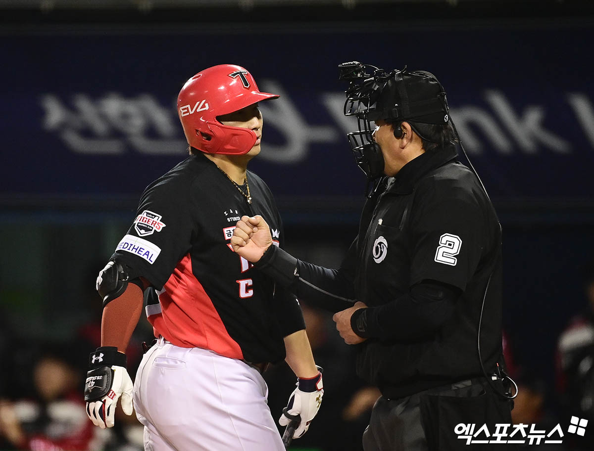 (엑스포츠뉴스 잠실, 박지영 기자) 4일 오후 서울 송파구 잠실야구장에서 열린 '2025 신한 SOL Bank KBO리그' KIA 타이거즈와 LG 트윈스의 경기, 3회초 무사 KIA 선두타자 나성범이 헛스윙 삼진 아웃으로 물러나며 아쉬워하고 있다.