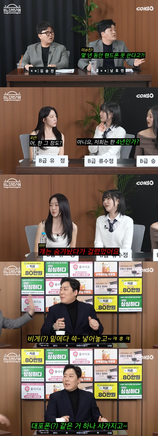 두 사람은 3~4년 정도 핸드폰을 쓰지 못했다고 했다. 이에 남호연은 "솔직하게 한 번도 몰래 핸드폰을 쓰지 않았냐"고 했고, 류수정과 유정은 "한 번도 그런 적이 없다"고 했다.