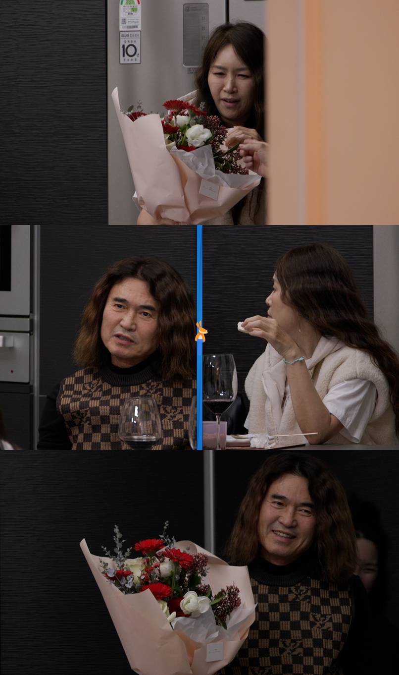 집에 돌아온 두 딸은 식단 관리하는 조갑경 맞춤 다이어트식을 준비한다. 두 딸이 준비한 다이어트식을 본 MC 홍진경은 “요즘 MZ들은 희한한 것들을 요리한다”며 신기해했다. 본격적인 식사를 앞두고 홍서범은 두 딸의 성화에 못 이겨 조갑경에게 꽃을 건넨다. 꽃조차 가무를 곁들여 주는 엉뚱한 모습을 보여 스튜디오를 웃음바다로 만들었다는 후문.