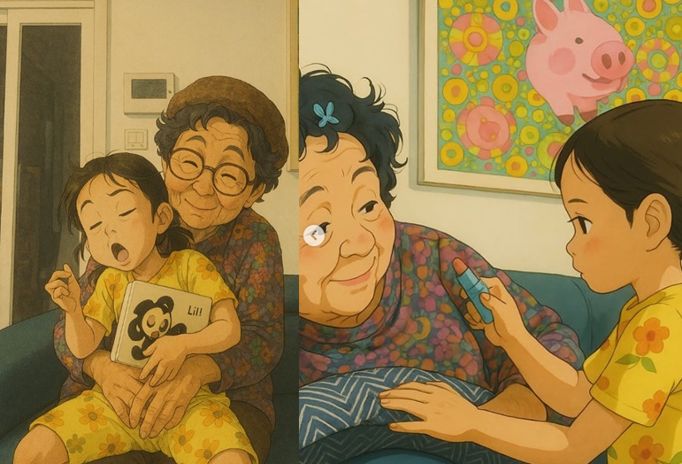 공개된 사진에는 할머니와 어린 여자아이가 있어 눈길을 끈다. 해당 사진은 KCM이 최근 유행한 AI를 통해 실제 인물 사진을 지브리 스튜디오 스타일로 변환한 것.