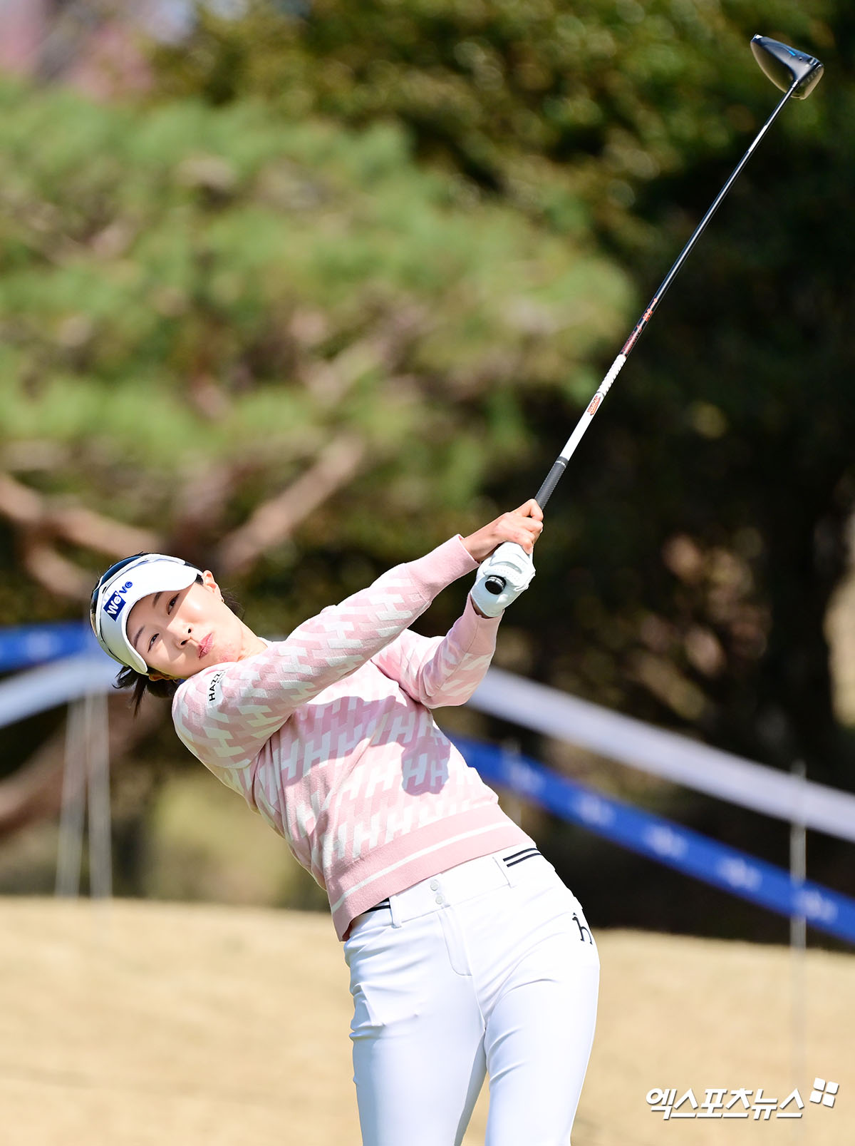 (엑스포츠뉴스 부산, 김한준 기자) 6일 부산 금정구 동래베네스트골프클럽(파72ㅣ6,578야드)에서 열린 '두산건설 We've 챔피언십'(우승상금 12억 원, 우승상금 2억 1600만 원) 최종라운드 경기, 유효주가 10번홀 티샷을 날리고 있다.