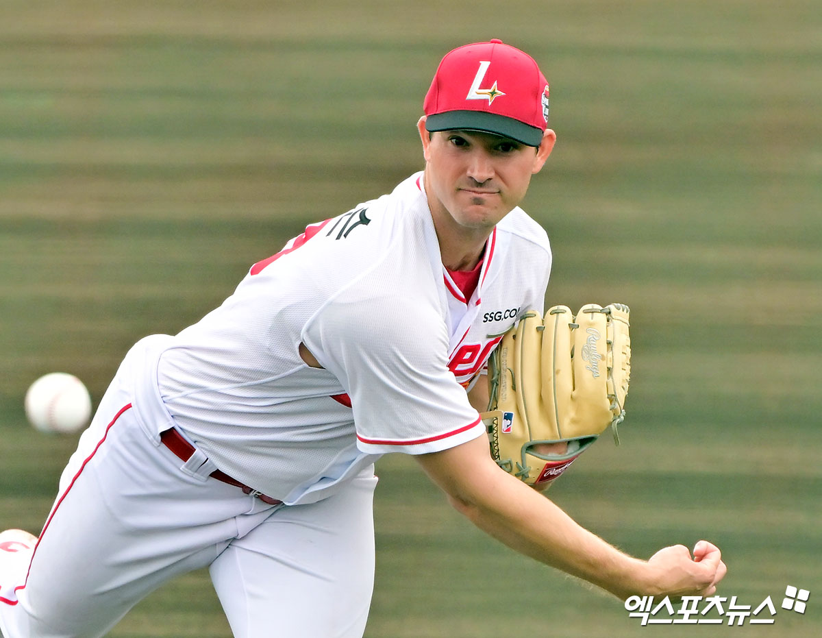 SSG 투수 화이트(사진)는 6일 강화 SSG퓨처스필드에서 열린 '2025 메디힐 KBO 퓨처스리그' 두산전에서 선발 등판했다. 최고 구속 154㎞로 2이닝 1실점을 기록하며 실전 감각을 끌어올렸다. 화이트 합류로 앤더슨의 부담이 줄어들 전망이다. 엑스포츠뉴스 DB