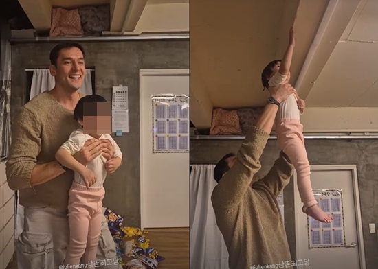 영상 속 줄리엔 강은 황정음의 둘째 아들과 놀아주고 있는 모습. 줄리엔 강은 193cm라는 큰 키로 비행기를 태워주고 있고, 황정음의 아들은 신기한 듯 눈을 반짝이며 즐거운 시간을 보내고 있다.