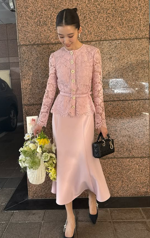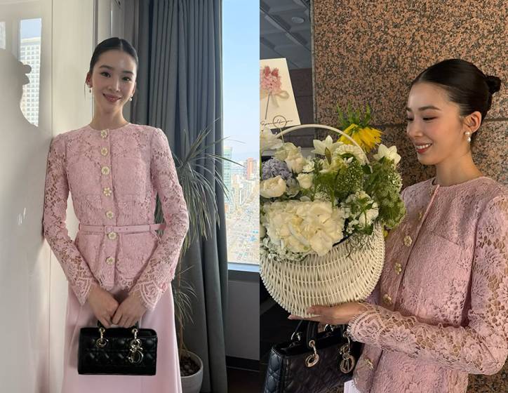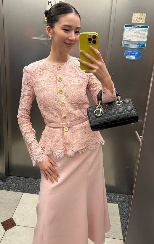 공개된 사진 속 아이린은 올백머리로 머리를 묶은 채 분홍색 레이스 원피스를 입은 채 D사 Lady D-Joy 스몰 백을 들고 있는 모습이다. D사 가방은 공식 홈페이지 기준 650만 원이다.