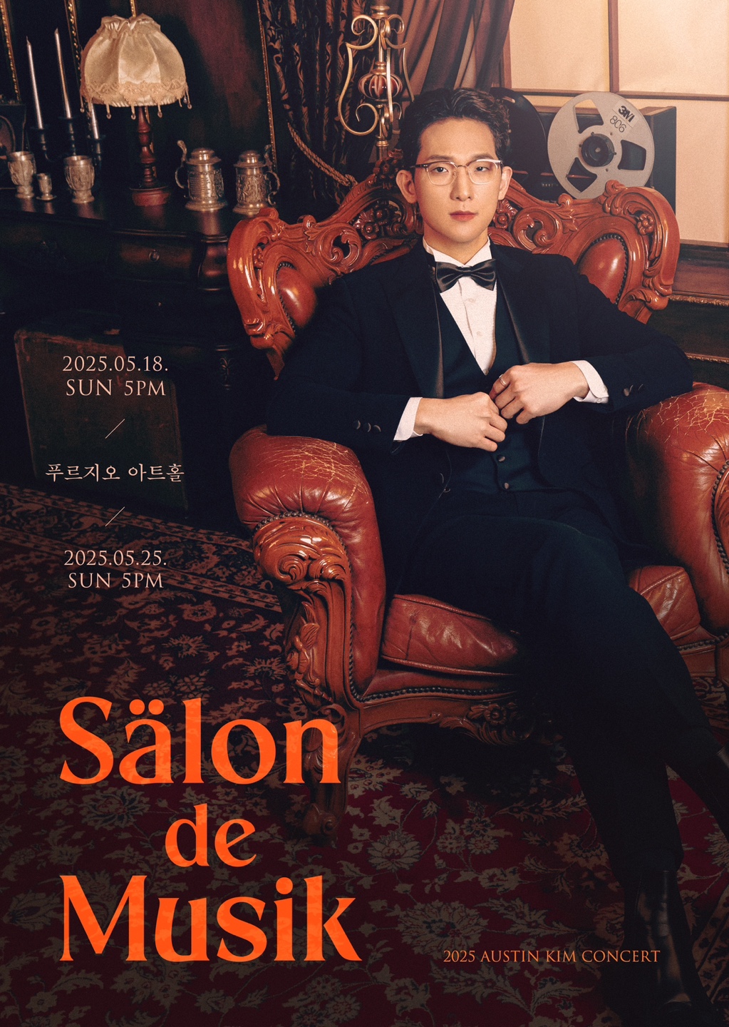 오스틴킴은 오는 5월 18일과 25일 오후 5시 서울 중구 푸르지오 아트홀에서 단독 콘서트 ‘살롱 드 뮤지크(Sälon de Musik)’를 총 2회 개최한다. 이번 공연은 포르테나 멤버 중 마지막으로 진행하는 단독 공연이자, 오스틴킴의 이름을 걸고 개최하는 첫 번째 단독 콘서트이다.