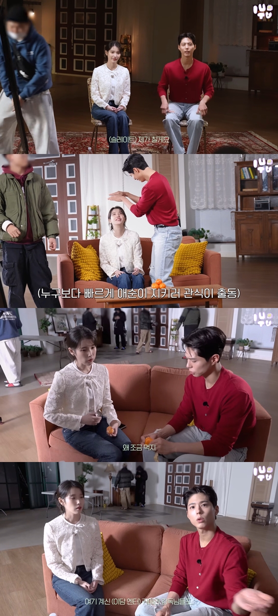 촬영 쉬는 시간에 박보검은 아이유에게 귤을 까주며 "아직 아무것도 안 먹었구나? 왜 조금 먹지"라고 걱정했고, 아이유는 "먹으면 입술 수정하고 그래야 되잖아"라고 답했다. 이어 귤 반쪽을 한 입에 먹은 박보검은 "이렇게 먹어보라. 이거 다 먹으면 '폭싹 속았수다' 잘 된다"라며 아이유에게 챌린지를 권하기도 했다.